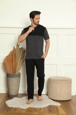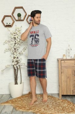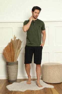 Moda Çizgi Erkek %100 Pamuk Cepli Kısa Kollu Pijama Takımı 6744