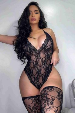 Merry See Dantel Çoraplı Fantezi iç giyim Bodysuit Siyah