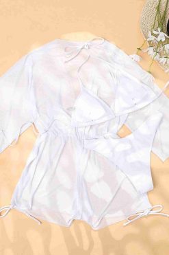 Angelsin Şifon Pareo Plaj Elbisesi Cover Up Kimono Beyaz