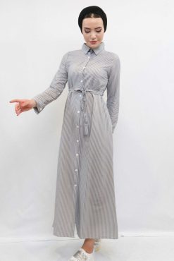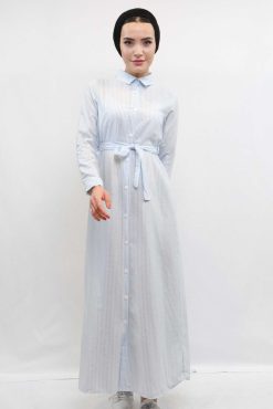 Moda Çizgi Fırfırlı Salopet Kot Elbise Mavi