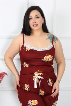 Moda Çizgi Kadın Büyük Beden Bordo 3’lü Sabahlık Takım 7720