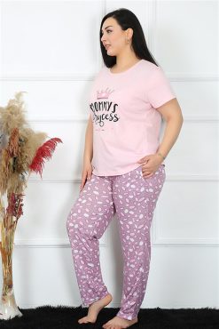 Moda Çizgi Kadın Büyük Beden Kısa Kol Pijama Takım 202190