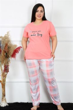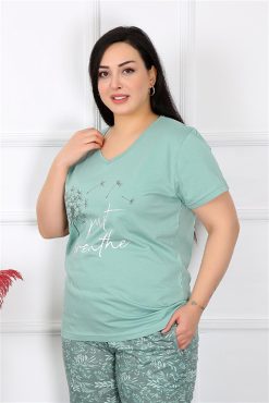 Moda Çizgi Kadın Büyük Beden Kısa Kol Pijama Takım 202191