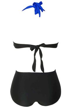 Angelsin Kaplı Mavi Siyah Tasarımlı Yüksek Bel Bikini Takım