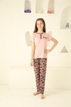 Moda Çizgi Kız Çocuk Pamuk Kısa Kollu Pijama Takımı 20364