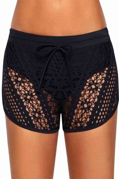Angelsin Dantel Deniz Şortu Birleşik Bikini Alt Siyah