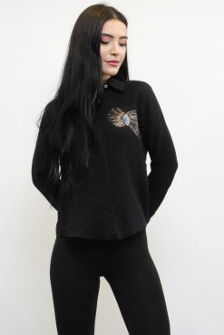 Moda Çizgi Taşlı Keten Gömlek MC2301 Siyah