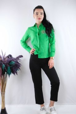 Moda Çizgi Taşlı Keten Gömlek MC2301 Yeşil