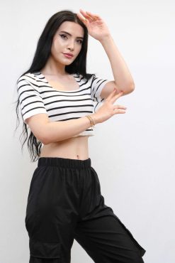 Moda Çizgi Triko Crop Çizgili Beyaz
