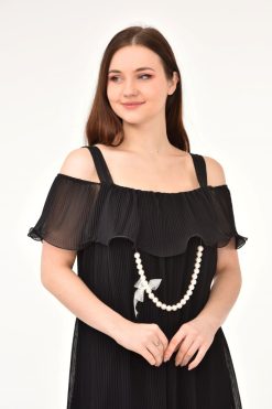 Omzu Açık Askılı Siyah Elbise Mc9412