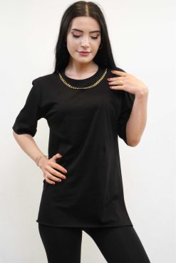 Moda Çizgi Zincir Aksesuarlı Tshirt Siyah