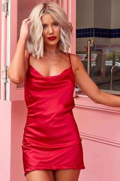 Merry See Gögüs Degajeli Saten Elbise Kırmızı