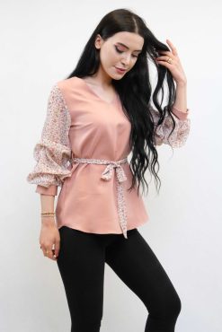 Moda Çizgi Büzgülü Şifon Kol Bluz Pudra
