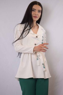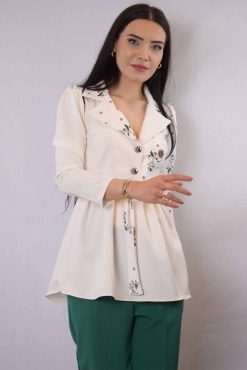 Moda Çizgi Ceket Model Bluz Ekru-Mint
