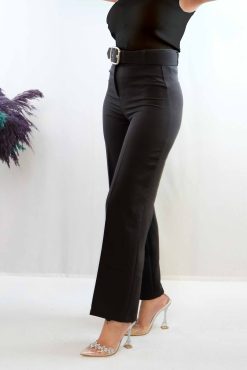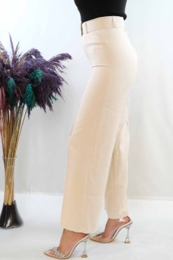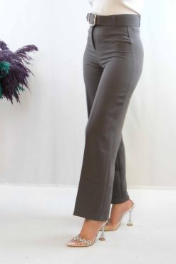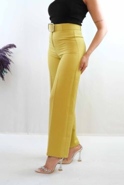 Moda Çizgi Kemerli Pantolon Yağ Yeşili
