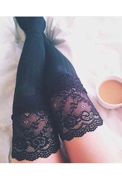 Merry See Parfümlü Dantelli Örgü Diz Üstü Jartiyer Çorap Lacivert