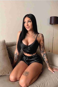 Merry See Saten Dantelli Şortlu Pijama Takım Siyah
