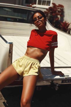 Merry See Saten Sütyen Şort Pijama Takım Sarı