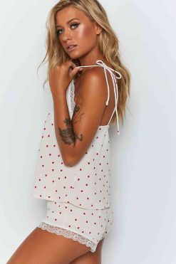 Merry See Dantel İşlemeli Kalpli Şortlu Pijama Takım Beyaz