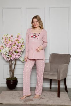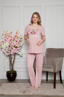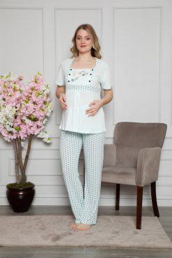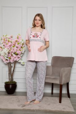 Moda Çizgi Kadın %100 Pamuklu Hamile Pijama Takımı 4505