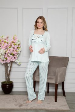 Moda Çizgi Kadın %100 Pamuklu Hamile Pijama Takımı 4508