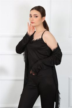 Moda Çizgi Kadın 3’lü Siyah Sabahlık Takım 16108