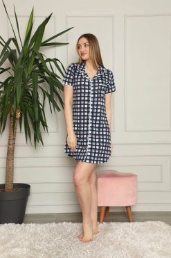 Moda Çizgi Kadın Pamuklu Önden Düğmeli Gecelik 979