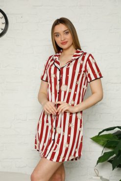 Moda Çizgi Kadın Pamuklu Önden Düğmeli Gecelik 980