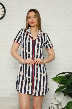 Moda Çizgi Kadın Pamuklu Önden Düğmeli Gecelik 1005