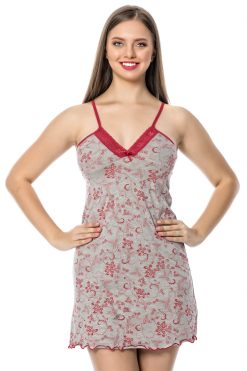 Moda Çizgi Bayan Gri Bordo Gecelik Sabahlık Takım 1104