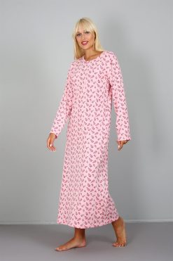 Moda Çizgi Bayan Ekru Kırmızı Gecelik Sabahlık Takım 1291