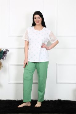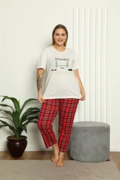 Moda Çizgi Kadın 5XL-6XL-7XL-8XL Büyük Beden Kısa Kol Pijama Takım 75001