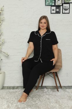Moda Çizgi Kadın Pamuklu Cepli Kısa Kol Büyük Beden Pijama Takım 202062
