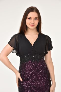 Pul Payetli Abiye Mc7303 Siyah-Mor