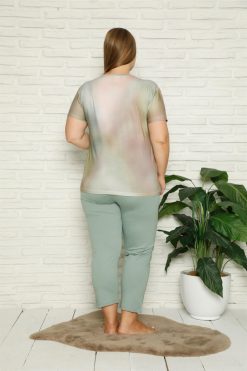 Moda Çizgi Kadın %100 Pamuk Cepli Kısa Kol Büyük Beden Pijama Takım