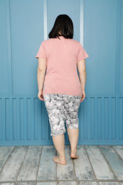 Moda Çizgi Kadın %100 Pamuk Kapri Büyük Beden Pijama Takım