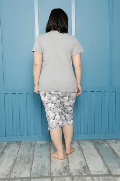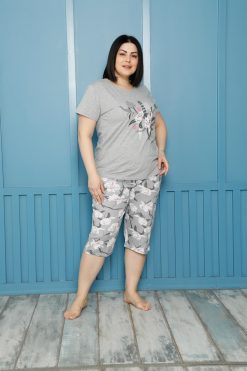 Moda Çizgi Kadın %100 Pamuk Kapri Büyük Beden Pijama Takım