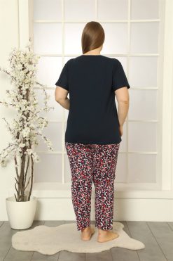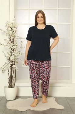 Moda Çizgi Kadın %100 Pamuk Cepli Kısa Kol Büyük Beden Pijama Takım
