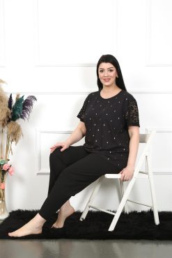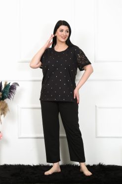 Moda Çizgi Kadın Kısa Kol Büyük Beden Pijama Takım