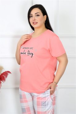 Moda Çizgi Kadın Büyük Beden Kısa Kol Pijama Takım 202190