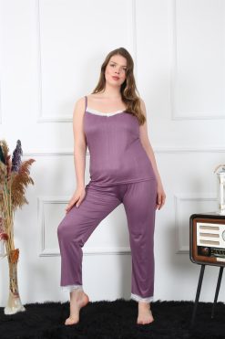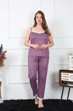 Moda Çizgi Kadın Büyük Beden İp Askılı Pijama Takım
