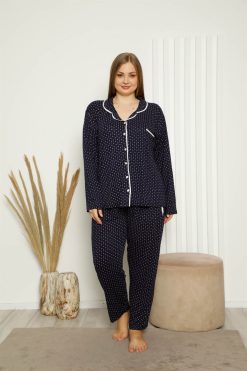 Kadın Pamuklu Cepli Uzun Kol Büyük Beden Pijama Takımı