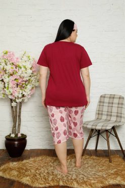 Kadın Pamuklu Kısa Kol Büyük Beden Kapri Pijama Takımı