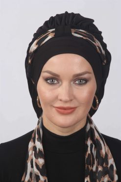 Dökümlü Leopar Fularlı BoneCandy kumaştan üretilmiştir.Leopar desenli fular detayına sahip modelimiz tüm baş ölçülerine göre takılabilir,tak çıkar kullanımı sayesinde oldukça rahattır. Dört mevsime uygun kumaşlar tercih edilerek tasarlanan bu modellerde kullanılan Candy kumaş oldukça esnektir. Günlük ve abiye kullanıma uygundur. Böylece gün boyu başınızda kayma yapmaz.Klasik kombinleriniz için de spor kombinleriniz için de tercih ederek oldukça kullanışlı bir şekilde modellerden faydalanabilirsiniz.