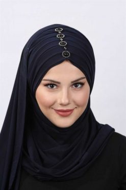Pileli Taşlı Şal Lacivert