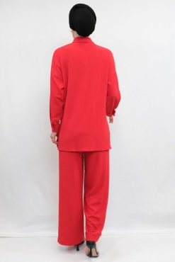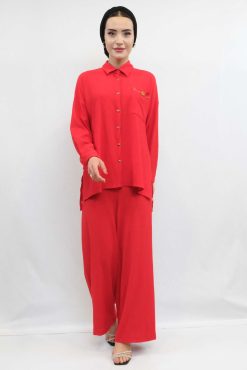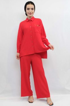 Moda Çizgi Zincir Aksesuarlı İkili Takım Kırmızı