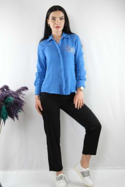 Moda Çizgi Taşlı Keten Gömlek MC2301 İndigo