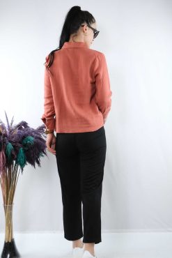 Moda Çizgi Taşlı Keten Gömlek MC2301 Mercan
