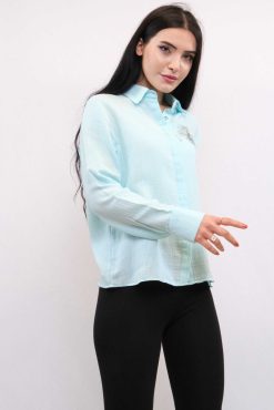 Moda Çizgi Taşlı Keten Gömlek MC2301 Mint
