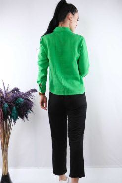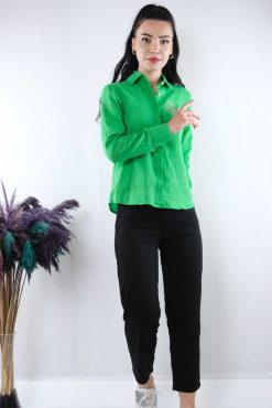 Moda Çizgi Taşlı Keten Gömlek MC2301 Yeşil